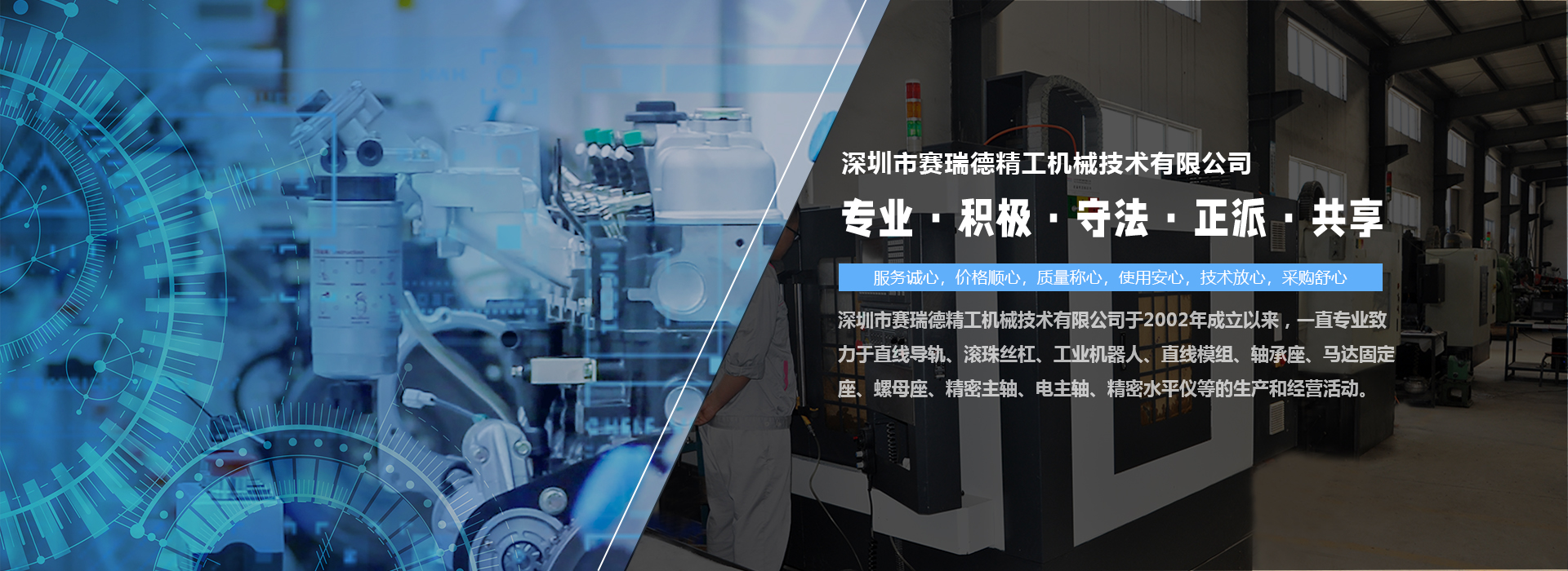 深圳市賽瑞德精工機(jī)械技術(shù)有限公司于2002年成立以來,一直專業(yè)致力于直線導(dǎo)軌、滾珠絲杠、工業(yè)機(jī)器人、直線模組、軸承座、馬達(dá)固定座、螺母座、精密主軸、電主軸、精密水平儀等的生產(chǎn)和經(jīng)營活動(dòng)。